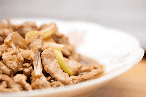 Жареная свинина с пореем (Cong Bao Rou Si)