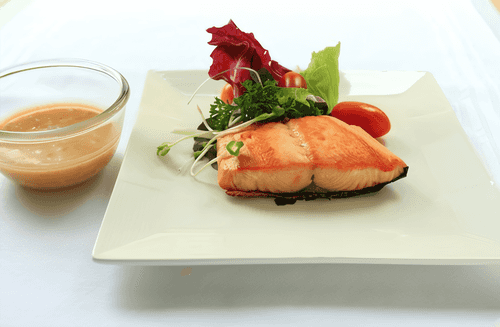 Маринованный лосось в саке и васаби с ароматным соусом — это изысканное японское блюдо, в котором сочетаются традиционные ингредиенты, создающие гармонию вкусов. Нежное филе лосося пропитывается насыщенным маринадом из саке, пасты тамаринда и васаби, приобретая пикантные и слегка сладковатые нотки. После запекания в духовке рыба становится невероятно нежной, сохраняя свою сочность. Завершающим штрихом служит ароматный соус на основе мисо-пасты, соевого молока и жареного кунжута, который придает блюду глубину вкуса. Такое блюдо идеально подойдет для ужина в японском стиле, оно прекрасно сочетается с рисом или свежими овощами. Лосось, маринованный в традиционных японских специях, раскрывает свою гастрономическую элегантность, оставляя приятное послевкусие. Великолепный выбор для ценителей утонченных морепродуктов и японской кухни.