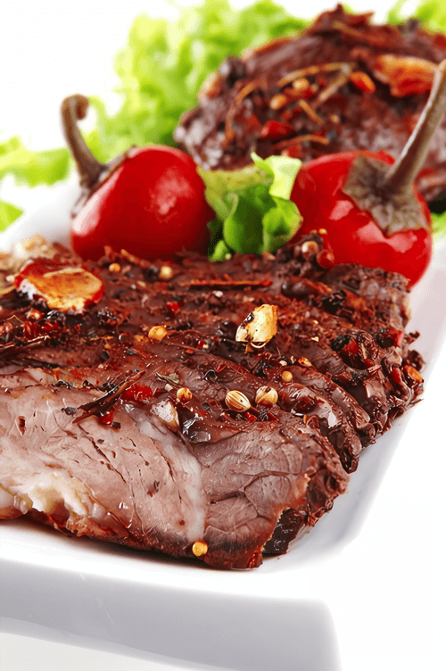 Ароматные говяжьи стейки с чесноком и перцем чипотле — это истинное воплощение богатства вкусов европейской кухни с нотками дымного мексиканского акцента. Чеснок придаёт мясу насыщенный аромат, а перец чипотле дарит пикантность и легкую копченость. Это блюдо идеально подходит для любителей сочных стейков с выразительным характером. Маринад глубоко проникает в мясо, делая его мягким и насыщенным, а обжарка на гриле создаёт аппетитную корочку. Эти стейки отлично сочетаются с легкими овощными гарнирами, свежими салатами и бокалом красного вина, подчеркивающим их сложный и глубокий вкус. Такое блюдо станет центральным элементом трапезы, будь то семейный ужин или праздничный вечер.