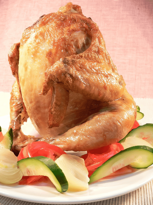 Готовность курицы проверяется протыканием. Если вытекает прозрачный сок — курица готова. Если непрозрачная красная жидкость — продолжать готовить.