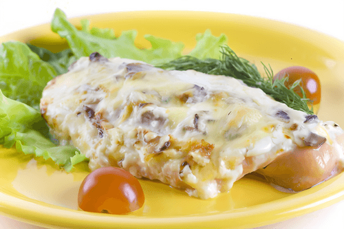 Треска, запеченная под грибным соусом
