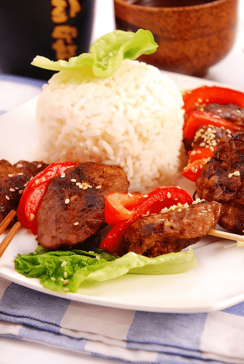Свиные шашлыки с красными перцами и ананасовым рисом