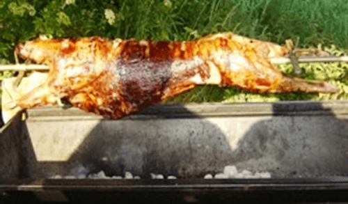 Масло смешивают с соком оставшихся лимонов, орегано и чабрецом. Смазывают тушку время от времени, вращая при этом вертел. Угли распределяют таким образом, чтобы большая часть находилась под передней частью и задними ногами. При массе 8 кг ягненок жарится не более 4 часов. При этом тушка постепенно опускается над углями до 30–40 см.