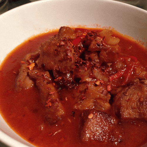 Гуляш из индейки с абрикосами