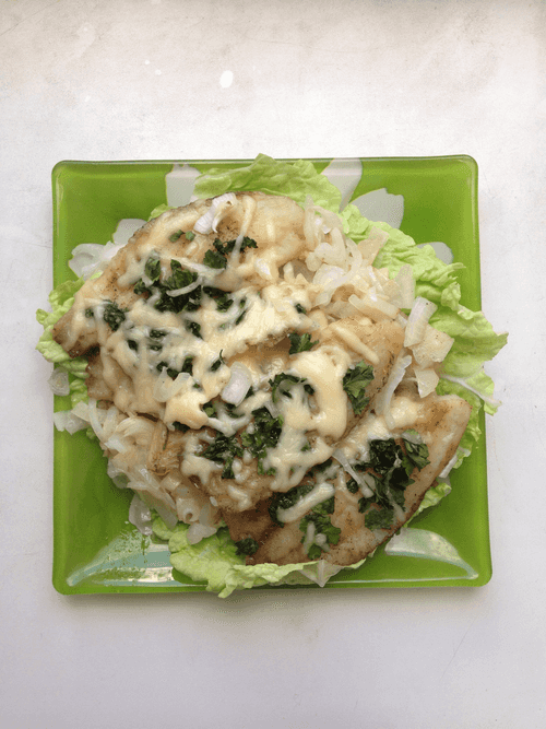 Тилапия, запеченная на луковой перине, под укропным одеялом