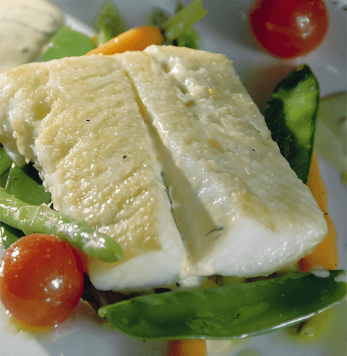 Палтус с мини овощами и соусом бер-блан