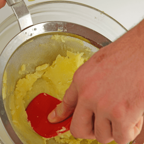 Вытащить картошку, очистить и пропустить через мельницу для овощей или картофельный пресс (более трудоемко, но для легкости текстуры даже лучше протереть через мелкое сито).