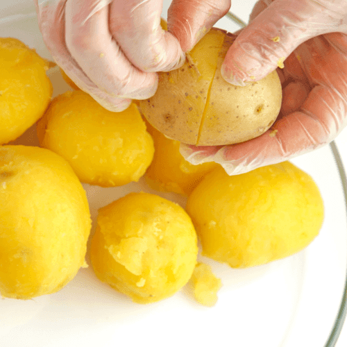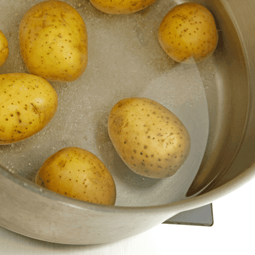 Картофель — лучше крахмалистого сорта, Робюшон использует французский сорт ratte — помыть и очистить от остатков земли, не срезая кожицы. Положить его в кастрюлю, залить двумя литрами холодной воды, добавить столовую ложку крупной соли и довести все это до легкого кипения. Так варить 25 минут, чтобы в конце нож легко входил и выходил чистым из картошки.