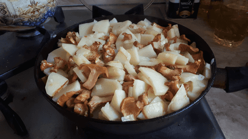 Жареный картофель с лисичками и чесноком