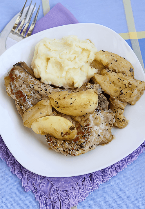 Свиные отбивные с яблоками и шалотом — изысканное блюдо французской кухни, сочетающее насыщенный вкус мяса с нежной сладостью фруктов и пикантностью карамелизированного лука-шалота. Такое блюдо напоминает традиционные деревенские рецепты, где использовали сезонные продукты и готовили их с простыми, но гармоничными сочетаниями. Лук и яблоки, обжаренные в сливочном масле и белом вине, приобретают мягкость и насыщенность, дополняя сочные отбивные. Готовится блюдо быстро, а результат впечатляет богатым вкусом и ароматом. Идеально подходит для уютного ужина с бокалом белого вина, подчеркивающим фруктово-луковую нежность соуса. Свиные отбивные с яблоками и шалотом — это гастрономическая элегантность, доступная каждому.