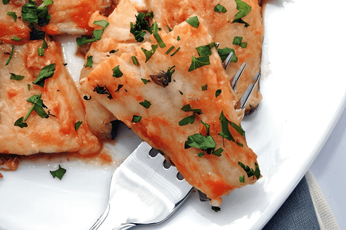 Треска в томатном соусе с черносливом и розмарином