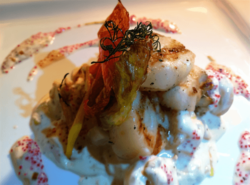 Морские гребешки на подушке из тигровых креветок — это изысканное блюдо итальянской кухни, воплощающее в себе гармонию морских даров и нежных сливочных нот. Гребешки, обжаренные на оливковом масле, приобретают аппетитную корочку и насыщенный вкус моря. Креветки, подготовленные с тонкостью, дополняют композицию своей сладостью и сочностью. Лук-порей, протушенный с белым вином, сливками и сыром горгонзола, создаёт мягкий, бархатистый соус, обогащённый пикантными нотами икры летучей рыбы. Гармония ингредиентов делает это блюдо идеальным для торжественных случаев или романтических ужинов. Украшение из укропа, кожицы помидора и лимона придаёт свежесть и элегантность, завершая вкусовую симфонию морского деликатеса.