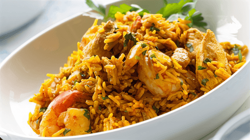 Плов узбекский с курицей и барбарисом — это ароматное и насыщенное блюдо, родом из узбекской кухни, где плов является настоящей визитной карточкой национальных традиций. История плова уходит в глубину веков, когда его готовили к торжественным событиям и семейным праздникам. В этом варианте нежная курица, пропитанная специями, сочетается с барбарисом, который придаёт пикантную кислинку и освежающий аромат. Рис, томленный вместе с морковью, луком и острым томатным соусом, впитывает все соки и становится насыщенным вкусом. Это блюдо идеально подойдёт для уютного семейного ужина или праздничного застолья, даря тепло восточной кухни в каждой ложке.