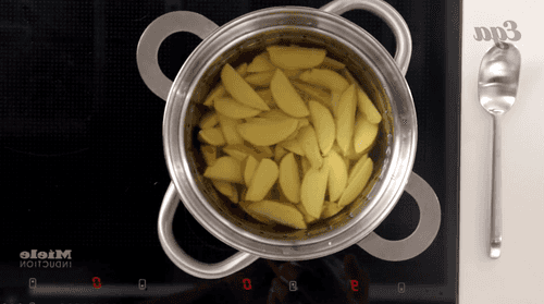 Довести до кипения и варить 2–3 минуты. Слить воду и поставить картофель остывать.