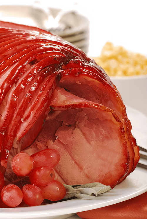 Затем снова полейте ветчину оставшимся соусом и переложите на доску. Тонко нарежьте.