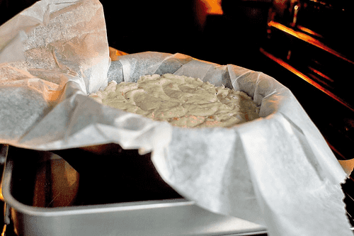 Поставить форму с рыбным хлебом в емкость, наполненную горячей водой — воды нужно налить столько, чтобы стенки формы были покрыты примерно на 2 см, — и отправить в предварительно разогретую до 200 градусов духовку на сорок минут.