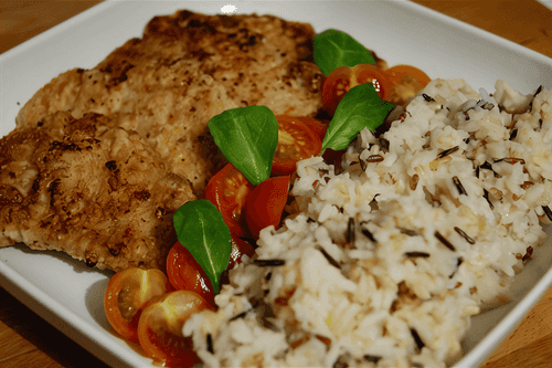 Подавать с гарниром. В данном случае смесь 2 видов риса (басмати и дикого).