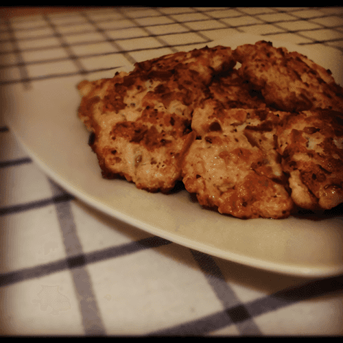 Столовой ложкой формируя котлетку, выкладывать на сковороду. Среднее время обжарки с двух сторон около 7–10 минут на среднем огне.