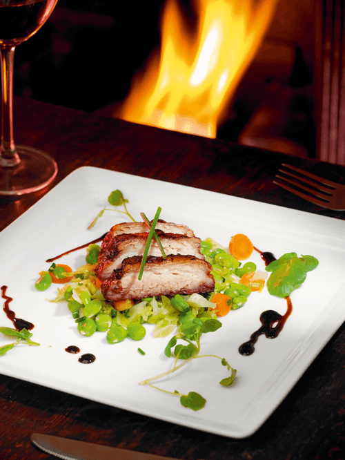 Свиная грудинка в цитрусовой соли с розмарином и тимьяном – это изысканное блюдо европейской кухни, в котором классическая техника маринования встречается с освежающей кислотностью цитрусовых. Благодаря соли, пропитанной ароматом лимонной цедры, розмарина и тимьяна, мясо становится невероятно нежным, а его вкус – глубже и насыщеннее. Медленное запекание делает грудинку мягкой, позволяя раскрыться ее сочности. Гарнир из савойской капусты, фава и моркови, маринованных в тонком балансе уксуса и кленового сиропа, дополняет мясо хрустящей свежестью и тонкими пряными нотками. Бальзамический соус добавляет пикантности и завершает композицию. Это блюдо, которое отлично подойдет для торжественного ужина, оставляя неизгладимое впечатление своей элегантной простотой и гармонией вкусов.