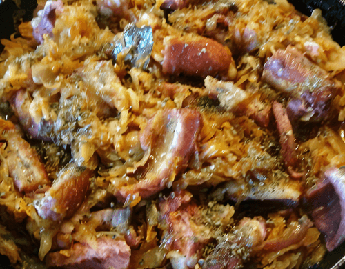 Копченые свиные ребра с капустой и пивом
