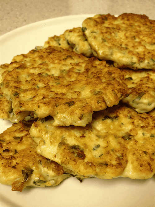 Массу выкладывать ложкой на сковородку с разогретым сливочным маслом и обжаривать с двух сторон под крышкой до золотистой корочки.