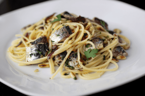Спагетти с сардинами и кедровыми орехами — это яркое воплощение сицилийской кухни, где морепродукты сочетаются с тонкими ореховыми нотами. Истоки блюда уходят в прибрежные регионы Италии, где рыба всегда была ключевым ингредиентом в кулинарных традициях. Нежное филе сардины, обжаренное с луком и чесноком, раскрывает богатство вкуса, а лимонная цедра добавляет свежести и легкой кислинки. Кедровые орехи привносят приятный хруст, оттеняя шелковистую текстуру пасты. Этот рецепт идеально подходит для легкого ужина или праздничного стола, а его аромат пробуждает воспоминания о морском бризе. Подается горячим, с дополнительной петрушкой и щепоткой черного перца, создавая гармонию вкусов, достойную лучших итальянских ресторанов.