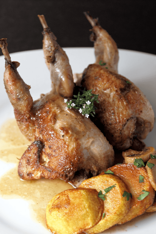 Перепелки, тушеные с тимьяном, – это шедевр испанской кухни, где изысканность встречается с домашним уютом. Богатый маринад на основе уксуса, специй и свежего тимьяна придаёт мясу утонченную пикантность, делая его невероятно сочным. Обжаренные до золотистой корочки, перепела томятся в ароматном соусе с вином, насыщая блюдо глубокими вкусовыми оттенками. Картофель и шампиньоны, пожаренные на оливковом масле, дополняют композицию, придавая насыщенность и гармонию. Это блюдо – настоящая гастрономическая симфония, где нежное мясо встречает терпкость вина, пряность специй и сливочную текстуру овощей. Идеальный выбор для неспешного ужина, наполненного атмосферой традиционного испанского гостеприимства.