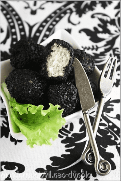 Куриные фрикадельки в черном кунжуте