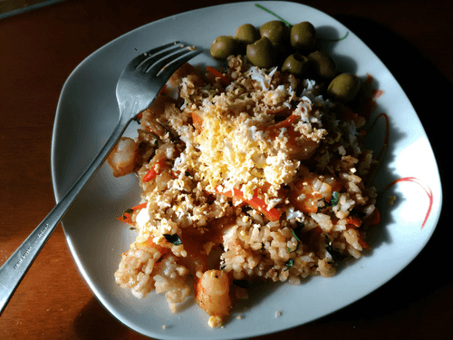Жареный рис с креветками и сладким перцем