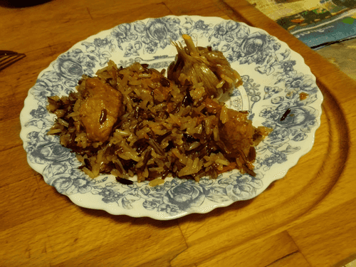 Когда основная часть воды впитается, возвращаем чеснок в середину, посыпаем рис слегка растертой зирой и плотно закрываем крышкой. Если плотной крышки нет, можно накрыть плов перевернутым блюдом, а уже сверху — крышкой. Огонь нужно уменьшить до слабого и оставить на 20–25 минут.