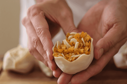 Манты из тыквы — это изысканное блюдо казахской кухни, наполненное теплом домашнего очага. Его корни уходят в традиции приготовления манты, но добавление тыквы придаёт начинке нежность и лёгкую сладость, идеально дополняемую ароматными прованскими травами. Репчатый лук добавляет сочность, а бекон и сало — насыщенность вкуса. Завернутые в тонкое тесто, манты становятся нежными и сочными после приготовления. Особую нотку блюду придаёт сыр сулугуни, который плавится, создавая мягкую текстуру и гармоничный баланс вкусов. Эти манты хороши как для семейного ужина, так и для праздничного застолья, где они удивят гостей необычным сочетанием ингредиентов и незабываемым вкусом.