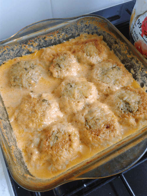 Из готового фарша сформировать колобки нужного вам размера и уложить в противень, смазанный маслом.