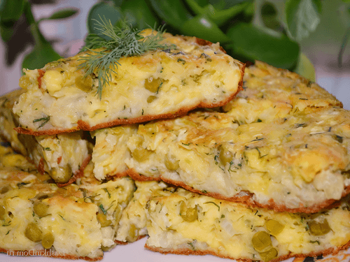 Капустная запеканка с сыром и зеленым горошком