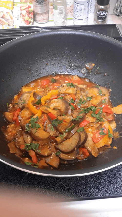 Овощи, тушеные в соусе из соков и соевого соуса, — это яркое и ароматное блюдо европейской кухни, которое восхищает гармонией вкусов. Сочетание баклажанов, сладкого перца и лука наполняется глубиной благодаря пикантному соусу на основе лимонного и томатного соков, оливкового масла и соевого соуса. Этот соус, пропитанный чесноком и перцем чили, добавляет блюду пряную остроту, делая его насыщенным и выразительным. Такой рецепт идеально подходит для повседневного ужина или праздничного стола, поскольку овощи сохраняют свою естественную текстуру и насыщаются богатым ароматом. Подача с зеленью петрушки и свежемолотым черным перцем завершает композицию, придавая свежесть и изысканность. Это блюдо не только радует вкус, но и несет в себе легкость и пользу для здоровья.