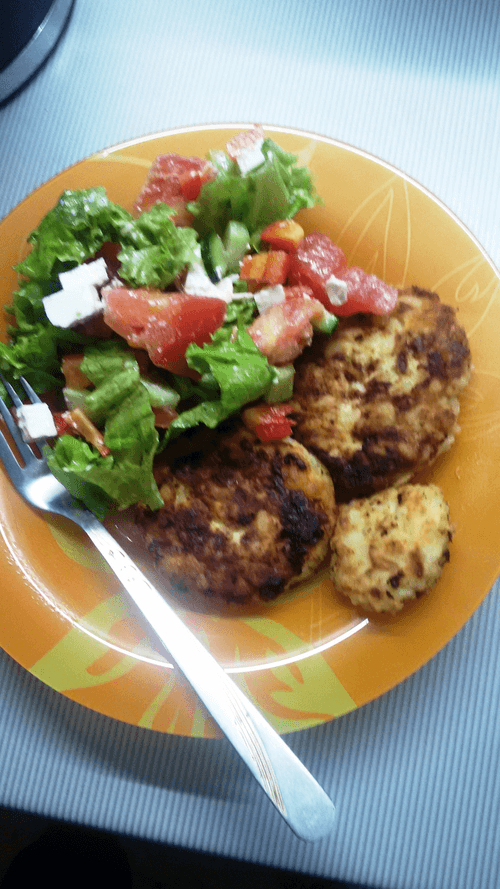 Мелко порезать зелень, добавить в общую массу. Туда же добавить 1 яйцо, посолить и поперчить по вкусу.