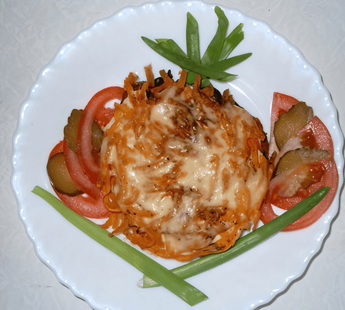 Отбивные с корейской морковью — это восхитительное блюдо европейской кухни, сочетающее в себе нежное мясо, пикантную морковь и тягучий сыр. Корейская морковь добавляет яркий вкус и легкую остроту, а майонезно-томатный соус придаёт сочность. Маслины добавляют утонченную солоноватую нотку, подчеркивая богатство вкусов. Истоки этого блюда не связаны с традиционной корейской кухней — морковь по-корейски была популяризирована советскими кулинарами. Блюдо идеально подходит для семейного ужина или праздничного стола, радуя гармоничным сочетанием ингредиентов и аппетитной запечённой корочкой.