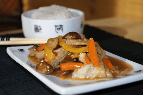 Свинина с грибами шиитаке и овощами по-китайски