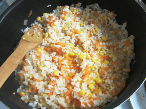 Рис с кукурузой, луком и морковью