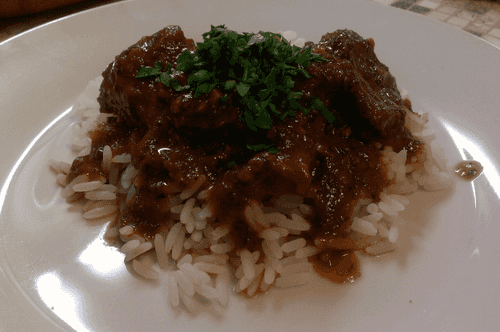 Когда соус начнет кипеть выложить в него мясо, перемешать, что бы соус покрыл его. Убавить огонь на самый минимум , накрыть крышкой, готовить 30–40 минут. За это время хорошо бы раза два аккуратно перемешать содержимое.