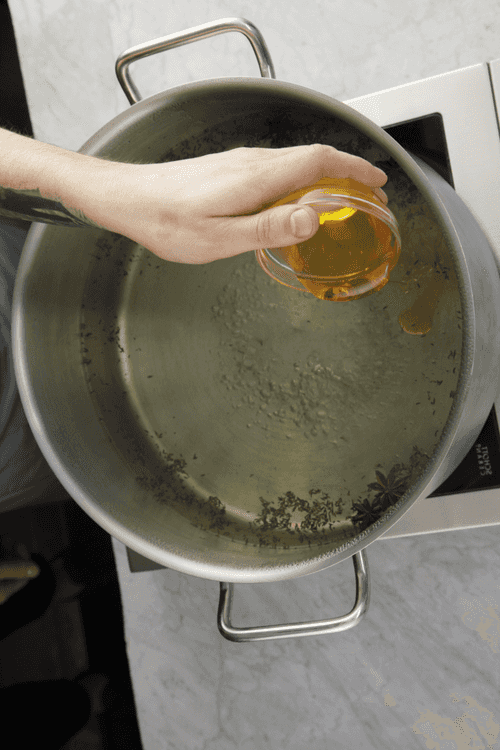 Нагреть пять литров воды до кипения, бросить в воду семена укропа, 100 грамм соли, звездочки бадьяна, душистый перец горошком, налить меда, перемешать и дать остыть.