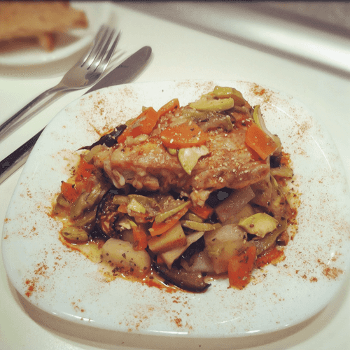 Курица с розмарином под овощами — это изысканное блюдо югославской кухни, которое сочетает нежность куриного мяса с ароматом свежих трав и богатством сезонных овощей. Розмарин, используемый в маринаде, придаёт курице тонкую пряную ноту, а овощи — кабачки, баклажаны, морковь и картофель — наполняют блюдо сочностью и насыщенным вкусом. Запекание в духовке позволяет ингредиентам гармонично соединиться, создавая удивительно ароматное и аппетитное угощение. Исторически этот рецепт отражает традиции Балканской кухни, где овощи и мясо запекаются вместе для создания насыщенных, но лёгких в восприятии блюд. Идеально подходит для уютных семейных ужинов, а также для праздничных застолий, где ценится натуральный вкус продуктов и аромат пряных трав.