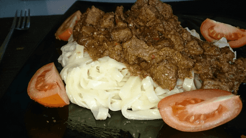 Заливаем полученным соусом мясо и тушим до загустения соуса.