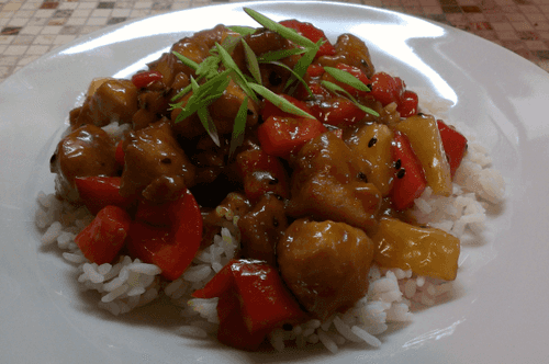 Курица в кисло-сладком соусе с ананасом