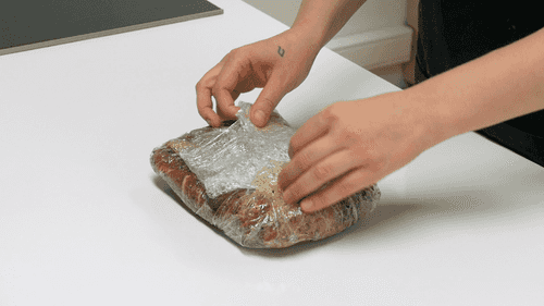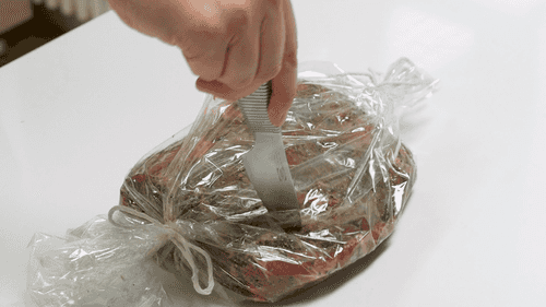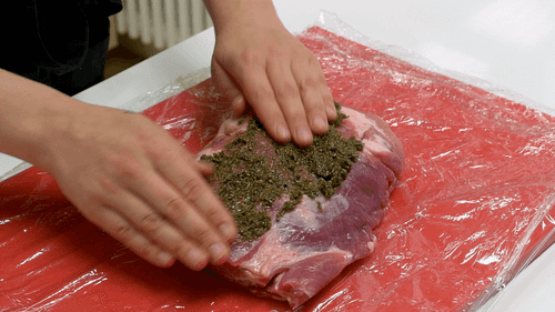 Мясо завернуть в пищевую пленку и положить на 2 часа в холодильник.