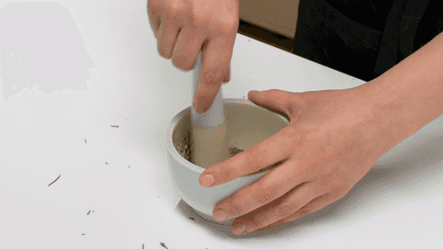 В ступке растереть розмарин перцем и солью.