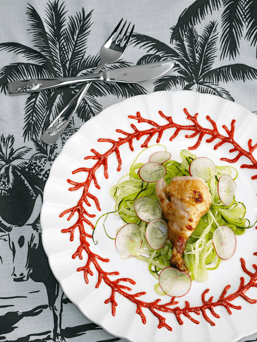 Курица с зеленой лапшой и редисом — это элегантное сочетание простоты и свежести. Этот рецепт основан на европейских кулинарных традициях, где особое внимание уделяется натуральным ингредиентам и тонкому балансу вкусов. Нежная куриная голень медленно томится в ароматном бульоне, насыщенном специями и травами, а затем запекается с медом, приобретая карамельную корочку. Лапша из свежего цукини подчеркивает легкость блюда, создавая контраст с сочной курицей. Хрустящий редис добавляет пикантности и свежести. Это блюдо идеально подходит для легкого ужина, сочетая в себе питательность и гастрономическое удовольствие. Его гармония вкусов делает его отличным выбором как для будничной трапезы, так и для особых случаев, когда хочется удивить гостей нестандартным подходом к классическим продуктам.