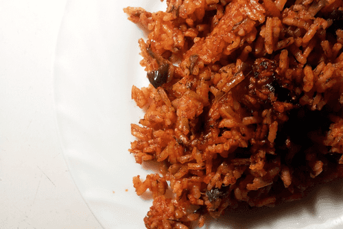 Рис с чесноком и луком-пореем в соусе сальса