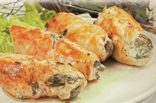 Рулетики из куриного филе со шпинатом — изысканное блюдо французской кухни, сочетающее нежность куриного мяса с насыщенным вкусом шпината и ароматной зелени. Этот рецепт берет свое вдохновение из классических французских техник приготовления рулетов, где важна гармония текстур и ароматов. Фарш из куриного филе, смешанный со свежим шпинатом и зеленью, заворачивается в тонкие отбитые кусочки грудки, создавая изысканный, но простой в исполнении кулинарный шедевр. После обжарки и запекания рулеты приобретают аппетитную золотистую корочку, оставаясь сочными внутри. Их подают с легкими соусами или гарниром из свежих овощей, что делает блюдо идеальным для праздничного ужина или уютного семейного обеда. Вкус мягкий, с приятными травяными нотками, а шпинат добавляет тонкий оттенок свежести.