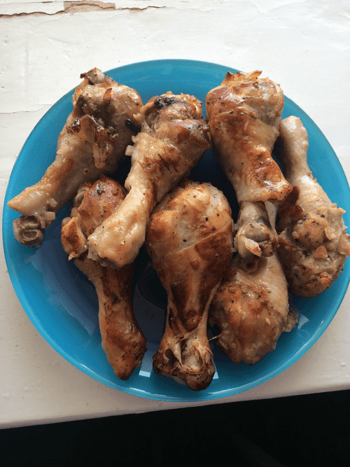 Перекладываем замаринованные ножки в огнеупорную форму. Остатки маринада сохраняем — они понадобятся для смазывания курицы в процессе запекания.