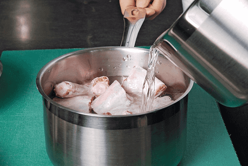 Хвосты выложить в кастрюлю или сотейник, залить водой, довести до кипения и варить два часа — пока мясо не размягчится. Куски разного размера варятся разное время, поэтому меньшие нужно вынуть раньше.